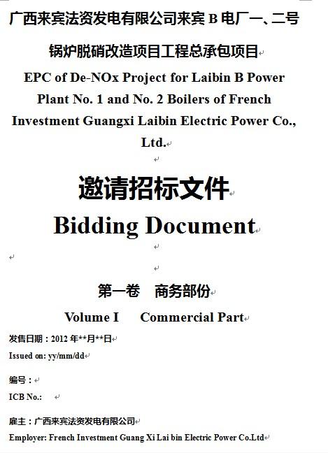 二、招标内容:来宾B电厂一、二号锅炉脱硝改造(详见招标文件)